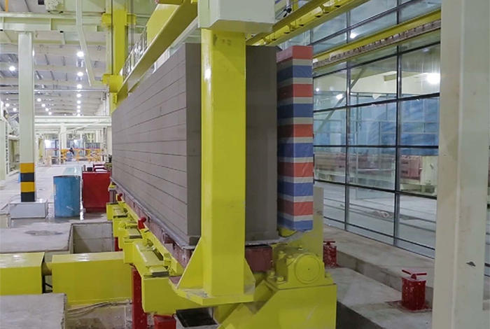 切割機(jī)組是加氣板材生產(chǎn)線(xiàn)的核心設(shè)備,用于切割不同尺寸的坯體,滿(mǎn)足超精確砌塊和板材的切割精度要求,生產(chǎn)板材時(shí)配合板材進(jìn)給刮刀,調(diào)節(jié)側(cè)面切割機(jī)的刮刀行程,可以滿(mǎn)足不同尺寸制品的混合切割。