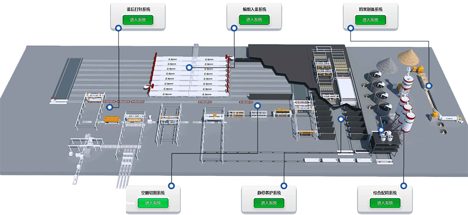 料漿、膠結(jié)料、石膏和鋁粉都分別通過(guò)相應(yīng)自動(dòng)計(jì)量稱(chēng)計(jì)量,后在攪拌機(jī)內(nèi)高速攪拌,澆注到模箱后進(jìn)行氣泡梳理。整個(gè)體系由 PLC 系統(tǒng)進(jìn)行自動(dòng)控制,保證工序的精確和高效。