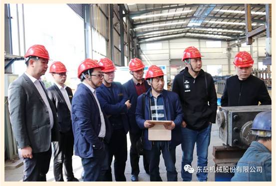 在東岳機(jī)械股份有限公司副總裁鄧奎先生的陪同下,李林輝董事長(zhǎng)與陳時(shí)勇總經(jīng)理一行先后參觀了東岳機(jī)械加氣裝備制造車間,及日照寶嵐新材料科技有限公司、濰坊昌大建筑科技有限公司、山東地球村集成房有限公司的加氣混凝土生產(chǎn)線